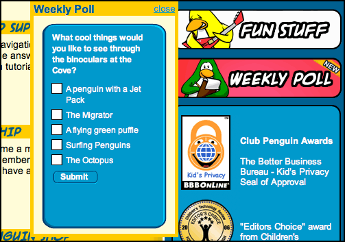 Today I wanted to highlight a couple of cool things we’re adding. Many of you have asked for it and so the official “Club Penguin Poll” has been added to the website home page. If you haven’t seen it yet, click here to check it out! If you have ideas for future questions let us know, we’ll be changing it at least once a week!