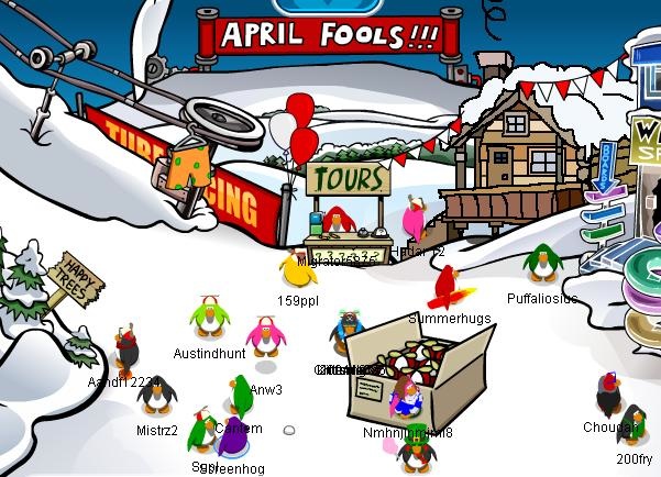 Have you been enjoying the April Fools Party? I know I have! The April Fools Party is probably my favorite Club Penguin party of the year, just because of all of the neat things we can put in it that we wouldn’t be able to do for any other party.