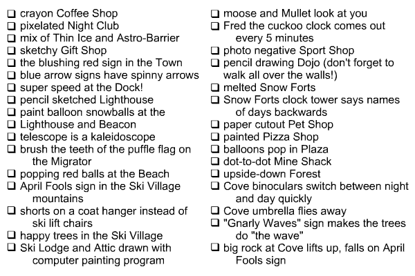 Have you seen absolutely everything in the April Fools Party yet? Are you sure? Here’s a master checklist for you, just to make sure that you’ve seen it all: