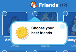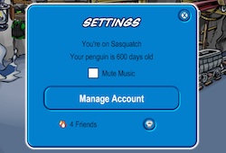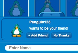 - Send a friend request by clicking the Friends icon. When your request is accepted, the penguin will be added to your Friends list.