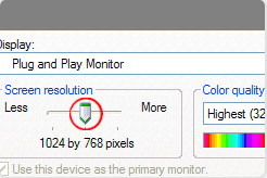 - You’ll see a little box titled “Screen Resolution.” In this box is a bar with an arrow on it. Drag the bar to the right until the screen resolution reads 1024 by 768 pixels or higher.
