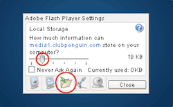 If ‘Remember Me’ doesn’t work on your computer it means your Flash Player doesn’t have enough room to save information from Club Penguin.
