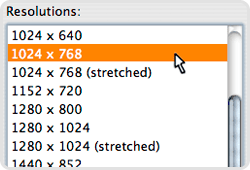 - A box will pop up. Inside this box you’ll see the word Resolutions. Make sure that the resolution highlighted is 1024 x 768 or higher. If it is not, use your mouse to highlight 1024 x 768.