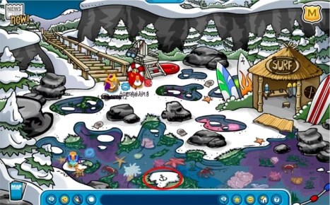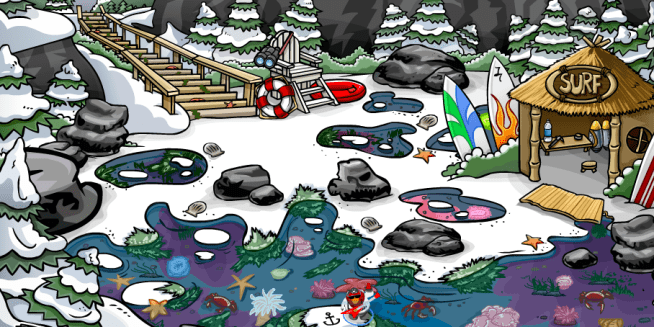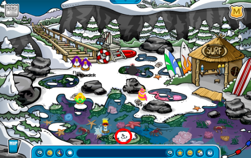 Each time your Penguin would waddle into the Cove, the Pin would move, although all you had to do was walk onto it.