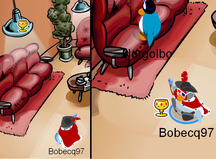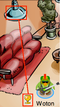 - How to Obtain: Penguins had to hover their mouse over the Pin on top of the lamp in the Coffee Shop, then the Pin would fall, for the Penguin to be able to walk onto it.