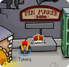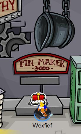 - How to Obtain: During the 2009 Medieval Party, Penguins had to hover their mouse over the Pin Maker 3000 to watch the progress as the Pin was being crafted. Once it was complete, the Pin would pop out, and Penguins could walk onto it to collect it.