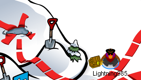 - How to Obtain: During the 2008 Rockhopper and Yarr’s Arr-ival Parr-ty, Penguins had to click on the Shovel in the Ski Village to unbury from the X marks the spot for the Treasure Chest Pin.