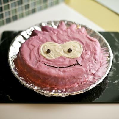 - Cut out spikes on one side of the cake to make it look like puffle hair.